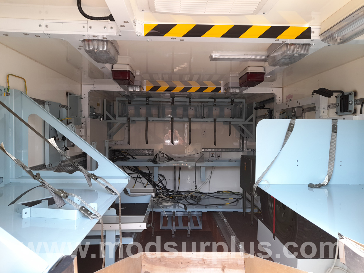 The comms body compartment is at the rear and is set out for two or more operators with racking for radio equipment (removed by the MOD)