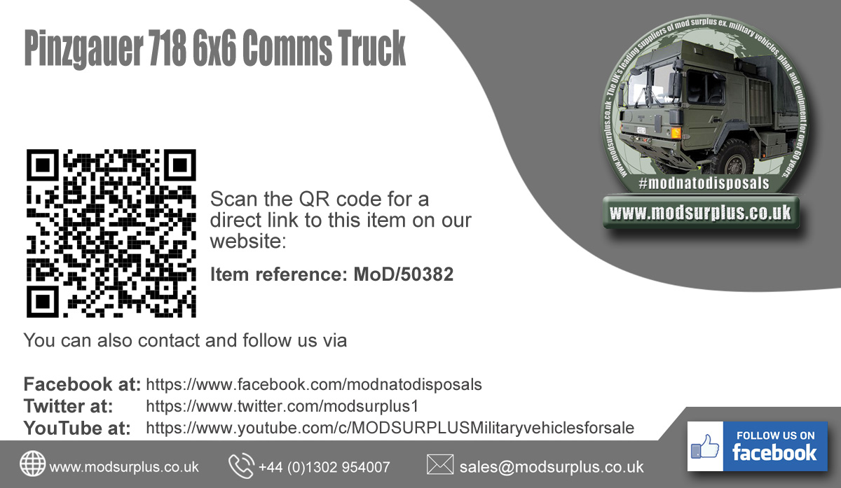 Pinzgauer 718 6x6 Comms Truck - Govsales of mod surplus ex army trucks, ex army land rovers and other military vehicles for sale