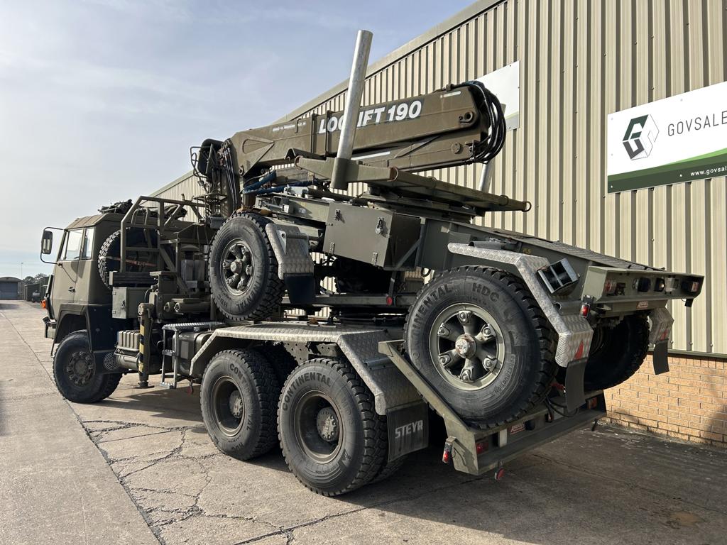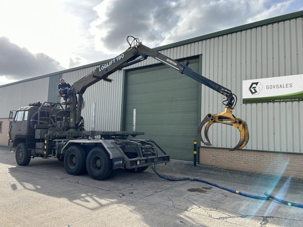 Steyr 1491.310 6×6 Timber Loglift Cargo / Crane Truck - Govsales of mod surplus ex army trucks, ex army land rovers and other military vehicles for sale